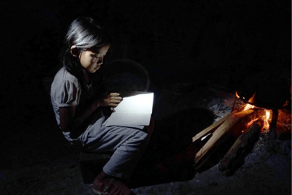 眼睛明亮,一边烧火一边看书的当地小女孩