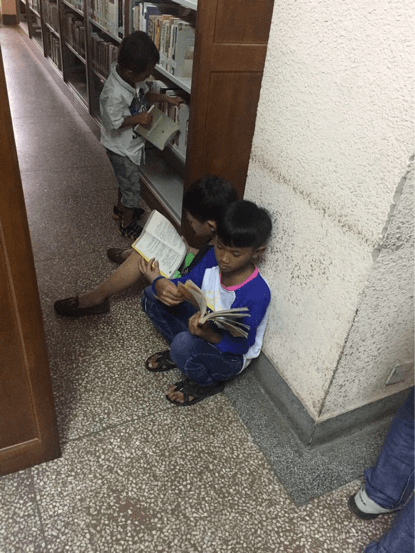 在云大图书馆认真看书的孩子们