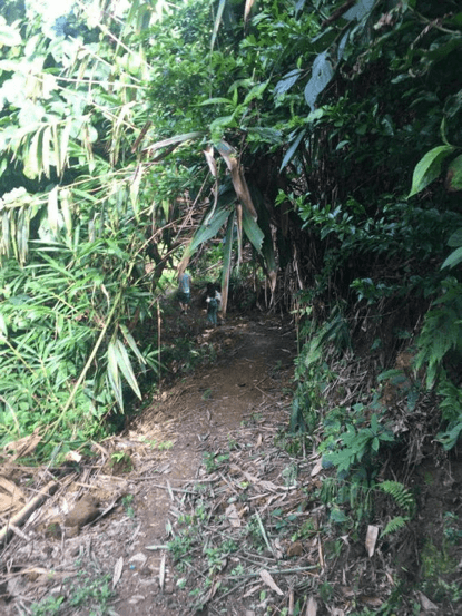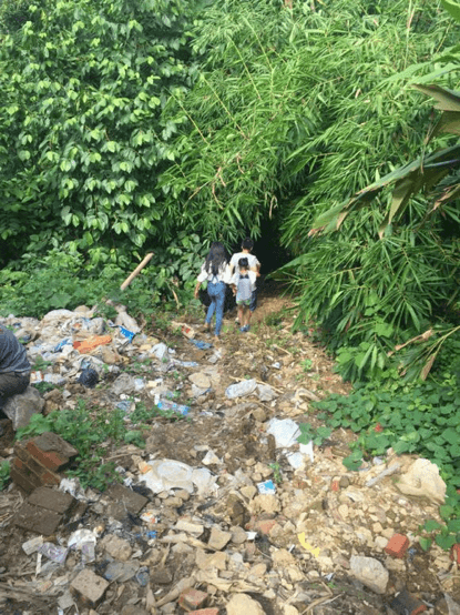 一条通往村民家里还算好走的路,后面跟着两个孩子,一个4岁,一个8岁
