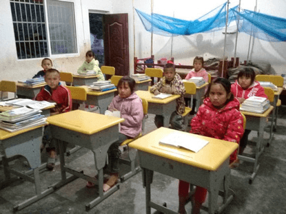 能上学的孩子们,学习环境也是十分的心酸,教室总共一间,孩子们每天的吃喝拉撒睡就都在这间教室里了。
