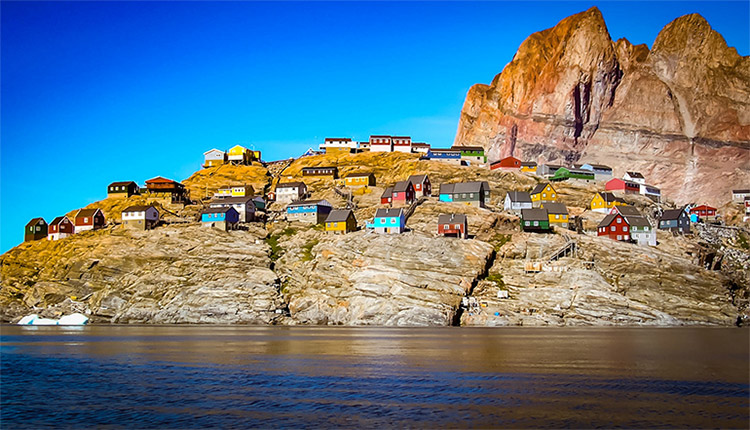 格陵兰位于北美洲东北部,隶属于丹麦,是世界第一大岛。全岛约4/5的面积在北极圈以内。海岸线长4.4万公里。年平均气温在0℃以下,最低可达-70℃。我们去的夏季,温度最高不超过10度。