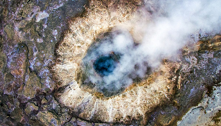 在未喷发的时候,【盖谢尔间歇泉】看起来仅是一个有着幽深蓝色的直径为18米的圆池,似乎是“文文静静”的,然而这种假象的打破,最多只8分钟,池水便会“忍不住”躁动起来,之后,突然如一条水龙般“跃”出,高度可以达到20米左右,据相关研究显示,盖谢尔已经像这样间歇性地喷发了千百年。