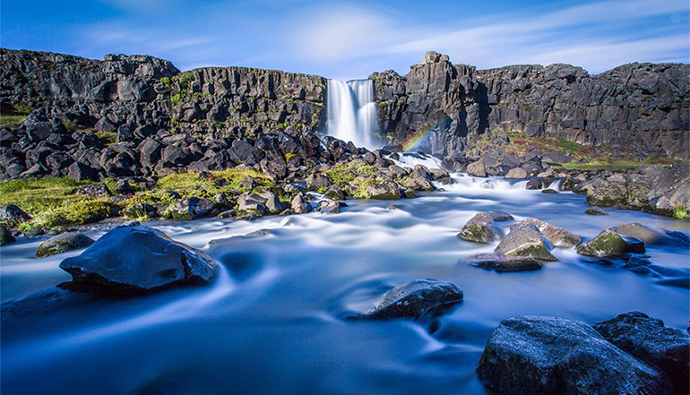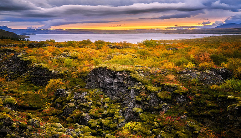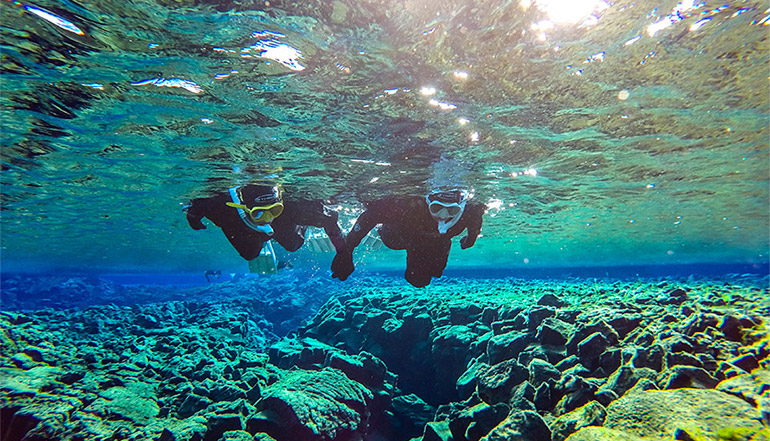 【辛格维利尔国家公园】,既是见证了冰岛许多重要的历史时刻的冰岛人民心中的圣地,同时也是两块大陆的分割的中心,历史与风景的光辉在此完美交汇,令人沉醉。如果喜欢水下世界,别错过公园里的【丝浮拉大裂缝】,那可是全世界前三的冷水潜水、浮潜圣地。