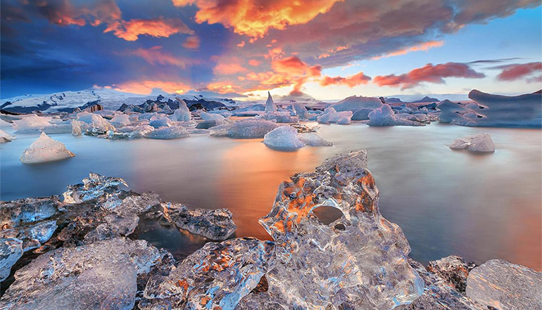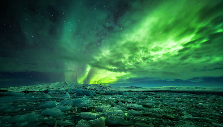 之后,我们会前往冷艳的【杰古沙龙冰河湖】,它是全球风光摄影师心中的顶级圣地,湖面上、沙滩上……处处是莹然剔透的冰块,如纯度最高的钻石,无需多言,便可引来万众瞩目。我们亦将夜宿于此,与万年冰一同守望满天宏丽的极光。