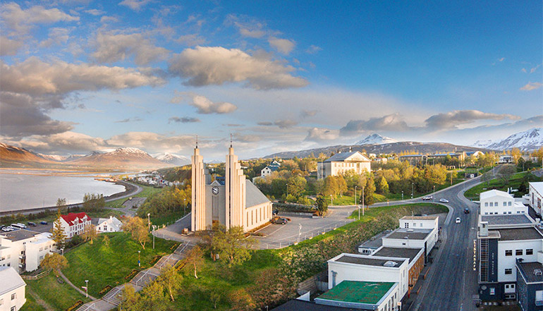 乘车从雷克雅未克去往【阿克雷里】,来到淳朴的阿克雷里,你会发现自己进入了爱心的海洋,有很多红灯都是爱心形状的,这些可爱的红灯将枯燥的等待变成了一件美好的事情。到达后,我们还有小半天的时间,可以游览【北极植物园】和【阿克雷里大教堂】等阿克雷里地标性建筑,1912年就创立的北极植物园已经有一百多岁了,而且这里完全免费,在地球上最北端的花园里、树枝下漫步,耳畔、眼前是北极的鸟语花香,美不胜收。公园里还有一家Cafe Bjork,木屋的造型,清新漂亮,走累了,可进去坐坐、吃吃、喝喝、拍拍照。而阿克雷里大教堂是阿克雷里的符号,它建在山坡上,爬上层层的阶梯便可抵达,终于站在大教堂门前时,别着急进去,回头看看,全市的风光都会闯入你的眼里。