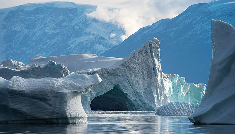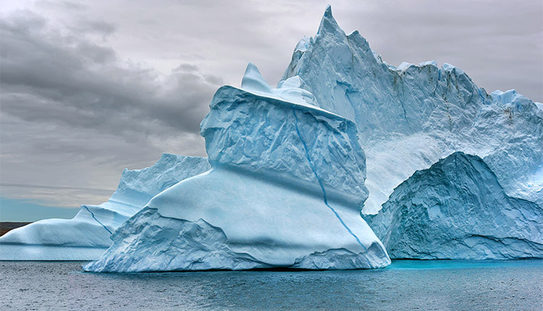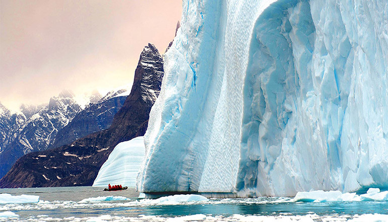 乘坐冲锋舟巡航北极冰海,见证冰山崩裂入海壮景