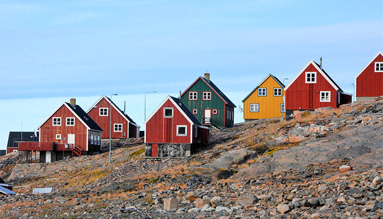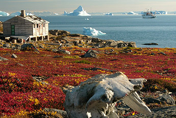 早上我们在【詹姆森地】南岸的一个咸水湖登陆,除了之前遇见过的麝牛们以及各种涉禽,你还有可能在这里上找到恐龙远古时留下的足迹。下午前往【伊托科尔托米特】参观。伊托科尔托米特是Scoresby Sound上最“大”的定居点,居民“多”达400人,我们可以在这儿的邮局买到明信片与邮票,将思念寄给远方心爱的人儿,还能看看这儿的居民挂晒在木架上的海豹皮、麝牛皮和北极熊皮。