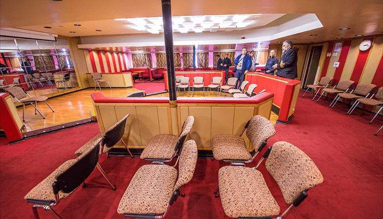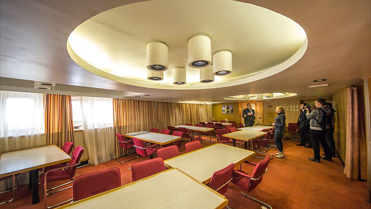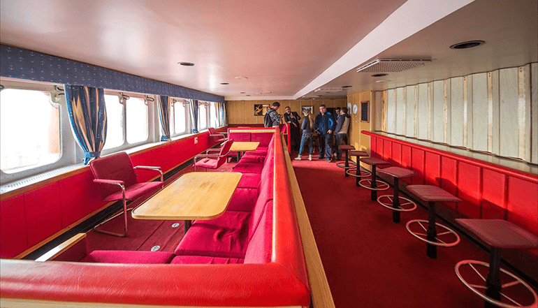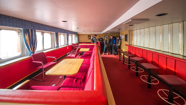 因为这艘船在设计时充分考虑到了乘客乘坐的舒适性,所以所有的船舱都有向外的、可以打开观景的窗户。标准双人舱大约14平米左右,一个单人床,一个沙发床。沙发床比单人床还舒服,宽大松软、靠近窗边和桌边,坐着和上下都方便。所有的船舱都有独立卫生间,随时可以洗舒适的热水澡。船舱内配有电视机和DVD播放机,我们会为大家准备一些中文光盘。船上还设有餐厅、酒吧、小型图书馆、舞厅、桑拿、泳池、健身房、按摩房、篮球场、乒乓球场等。
