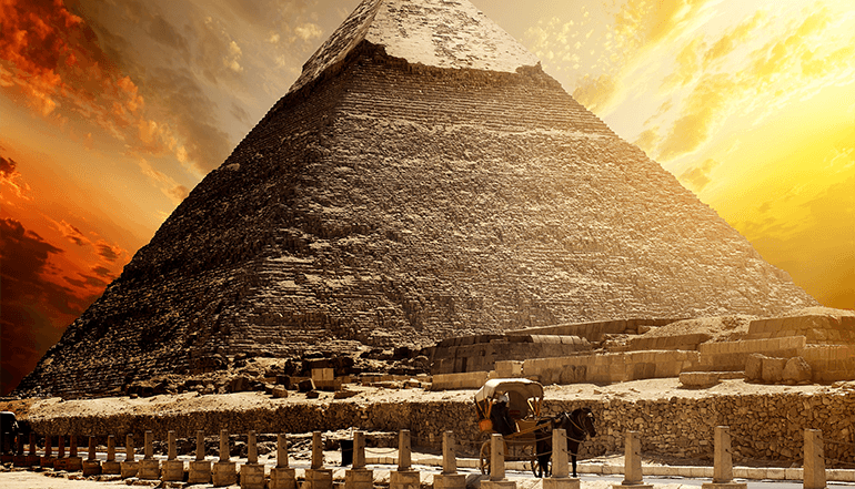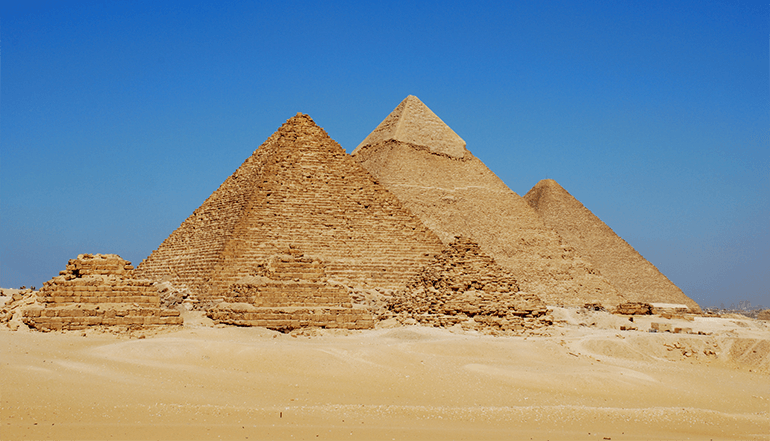 到埃及,怎能不到金字塔?下了飞机,转乘汽车前往开罗的郊区吉萨。埃及共发现金字塔96座,最大的是开罗郊区吉萨的三座金字塔。【吉萨金字塔群】主要由大金字塔(也称胡夫金字塔)、哈夫拉(Khafra)、孟卡拉金字塔组成。分别由第四王朝的三位皇帝:胡夫、哈夫拉和孟卡拉、在公元前2600年—公元前2500年建造的。作为法老的死后场面的陵宫,金字塔的组织形制反映了后世重生的信仰,其群体布局则折射出天上星宿的模式,神妙奇特。