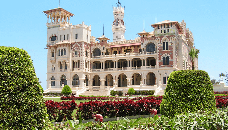 【蒙塔扎宫】又称“埃及夏宫”、“蒙塔扎宫花园”、“蒙塔扎花园”、“法鲁克夏宫”等,它是埃及末代国王法鲁克的行宫,它位于亚历山大东端一个广大的风景区中(景区包括一座博物馆、几段海滩浴场以及餐厅和设备齐全的旅游中心)。蒙塔扎宫的四周都是园林,景色绝佳,环境优美。宫内陈设无比奢华,多个房间与卧室亦保持着原貌。