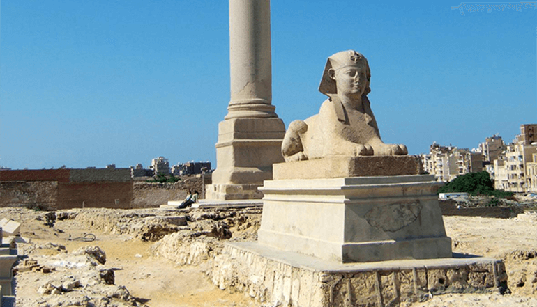 埃及亚历山大城的城徽【庞贝柱】,又称骑士之柱,是一根高达27米的粉红色亚斯文花岗岩石柱,建于公元一世纪左右的罗马皇帝戴克里先时期,石柱原是萨拉皮雍神庙的一部分,萨拉皮雍神庙是希腊-埃及神萨拉皮斯最重要的神庙,最初建于托勒密三世在位时期。神庙仅仅存在很短时间就被毁了,只有石柱保存下来,成为航海者的航标。巨大的石柱已经耸立1600年。
