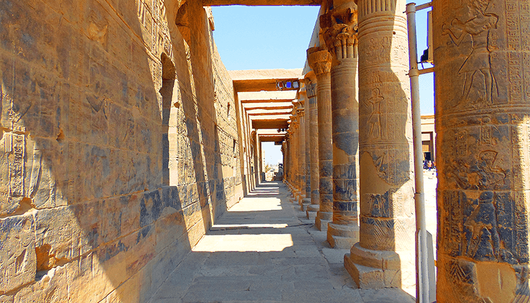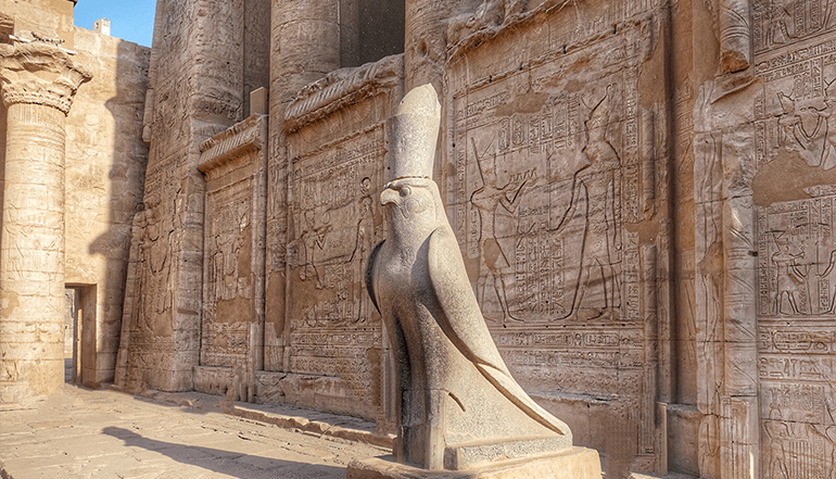 这天登上游船,向着阿斯旺的方向出发,之后两天都会在尼罗河上度过,中途会经过恩斯纳,以及两个神庙,两岸的风景也会随着时间的推移变化。【艾德福神庙】因其位于埃及尼罗河西岸城市艾德福而得名。艾德福是埃及主要制糖和陶器中心,至今仍留有古埃及文明的痕迹。艾德福神庙供奉天空之神荷鲁斯(Horus),神庙地处高地,不受河水泛滥的威胁,是埃及保存最完整的神庙。另外,庙内墙壁的铭文为学者提供了不少古埃及于希腊罗马时期在语言、神话及宗教方面的资料。