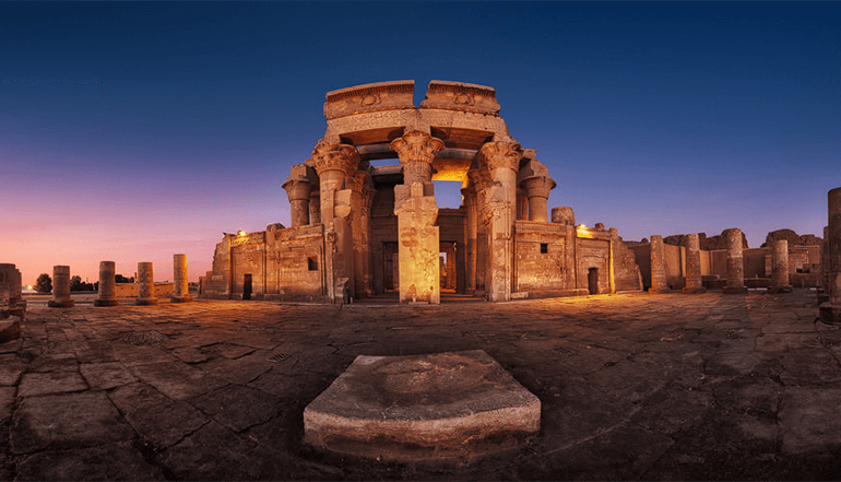 【科翁坡神庙】建造于托勒密王朝,是鳄鱼神(Sobek)的祭祀中心,其原址为尼罗河畔的古城帕塞白克,古城遗址早已无处可寻。这个神庙的不同之处,在于其是一座同时祭奉老鹰神,即天空之神荷鲁斯(Horus)与鳄鱼神索贝克(Sobek)的双神庙。一条中轴线将神庙分成对称的两部分,各供奉一个神。它有两个大门。一个大门是专为鹰首神荷鲁斯(Horus)所建的,另一个是专为鳄鱼神(Sobek)所建。从进大门开始,会发现左、右两边无论是建筑还是雕刻都自成体系,互不相干。