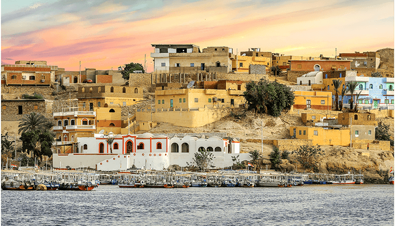 中午用完了午餐之后,下午就搭乘三桅帆船穿越尼罗河登上【大象岛】去参观努比亚村庄和努比亚学校,这里是一片彩色的海洋,每座房屋外墙涂满了各种颜色,与远处的青青农田和摇曳生姿的椰枣树一同构成一幅生动和谐的画面。
