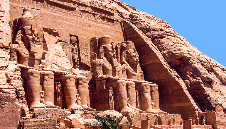 吃完早餐,向着【阿布辛贝神庙】出发。古埃及新王国第十九王朝的拉美西斯二世(RamsesⅡ)建造了这座岩窟神庙,这座神庙的不凡之处在于其并非由平常的砖石所砌,而是整个地被从山体中挖出来的。