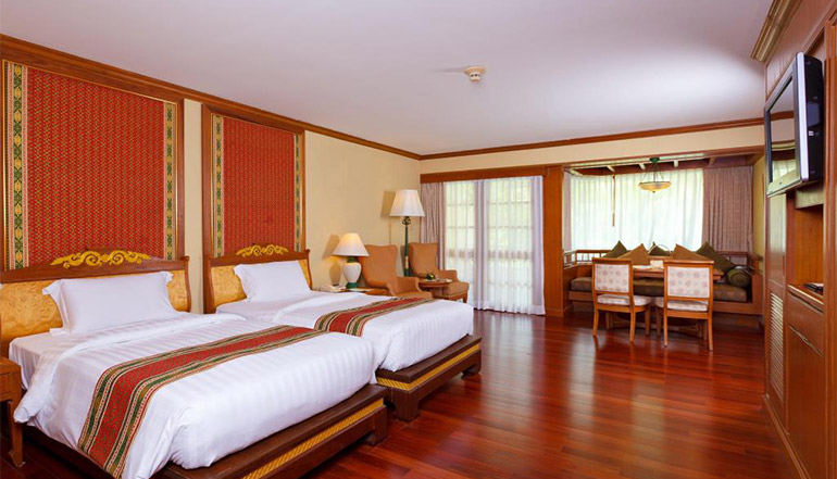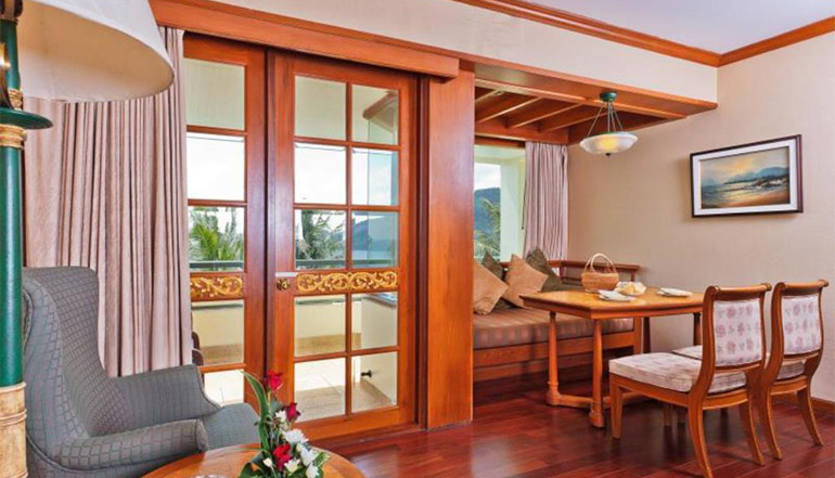 下飞机后,司机已经在出口举贵宾牌等待着我们了,之后,直接乘车前往五星级度假村【Diamond Cliff Resort & Spa】休息。在普吉岛的五个夜晚,我们都会在这里度过,度假村位置优越,坐落于芭东上方占地20英亩(8.1公顷)的美丽花园里,俯瞰着安达曼海和卡利姆海滩,此外,度假村内还有3间餐厅、3间酒吧以及2个游泳池,并为客人提供免费的迎宾饮品与水果,而我们将入住的客房,装修奢华,设施齐全,且附带可观赏日落美景的私人阳台。