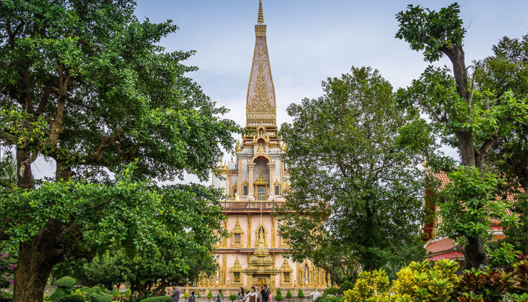 一觉睡到自然醒后,就在酒店用餐。到了10点,我们的中文向导会开车来接我们,第一站是【查龙寺】,普吉岛上共有29间隐修院,查龙寺最大!最宏伟!最华丽!寺院里,最醒目的则是一座集合了泰国南、中、东北部建筑风格的高达61.4米的大宝塔,这个宝塔里供奉着一块来自斯里兰卡的佛骨,据说,是Phra Borom Sareerikatat的遗物,因此,很多当地人会来寺内祈祷。