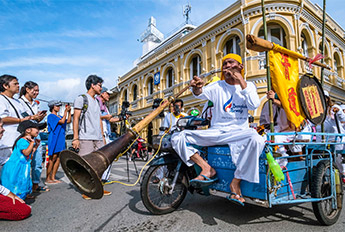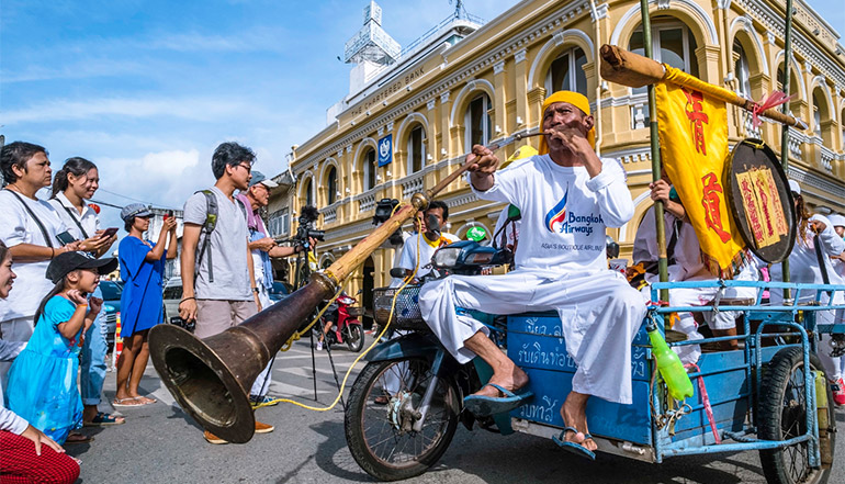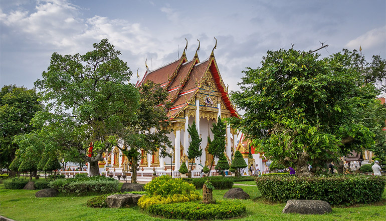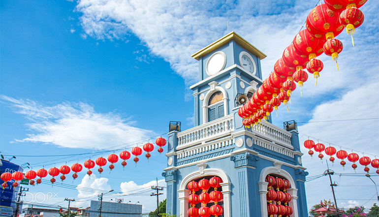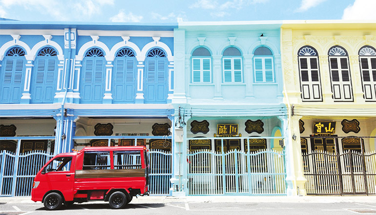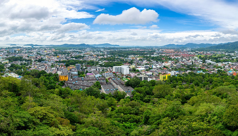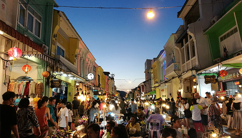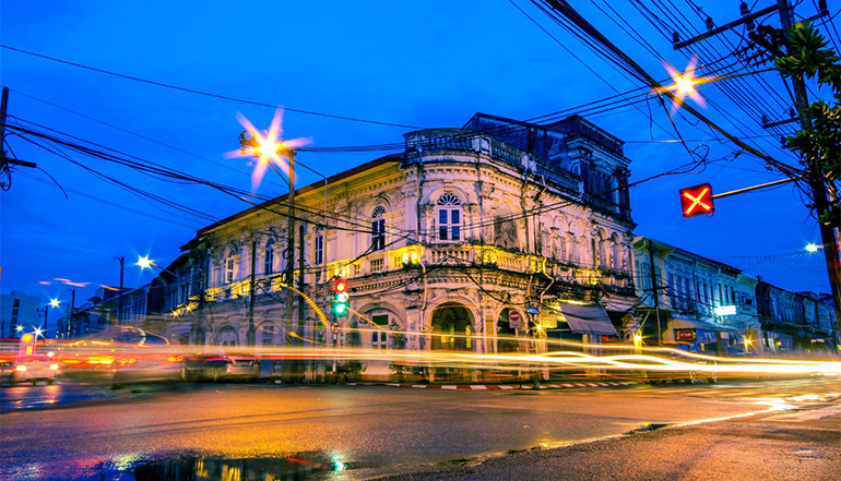 随后前往【普吉老街】游览。如逢周末,老街会有很地道的【周末市集】,如果赶上了,可以学做一回“当地人”,随意逛逛。之后前往【考朗山山顶】,一为俯瞰普吉镇美景,二为今日的晚餐——我们会去考朗山最棒、最酷的山顶餐厅【童卡咖啡厅】以废弃不用的火车车厢作为餐室,提供泰餐和西餐,还有各式葡萄酒,同时观景视野很棒。