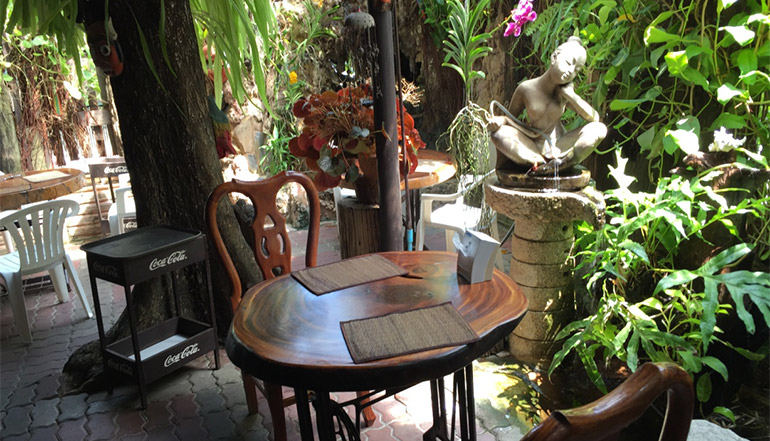 结束后去【自然餐厅】吃中饭,确实非常自然,各种木雕、绿植就是这里的仅有的“装饰物”了,即使在炎炎夏日,只要走进餐厅,就能马上享受到一片阴凉——来自植物和自然的风,而非来自天花板与空调。餐厅的招牌菜是冬阴功汤、咖喱蟹以及皮皮虾,但如果喜欢的话,还可以在这里尝试更多特色美食,如青芒果汁、甜芒果糯米饭、烤开背大虾、清蒸吞拿鱼、烤生蚝和咖哩鸡肉等等,也很不错。