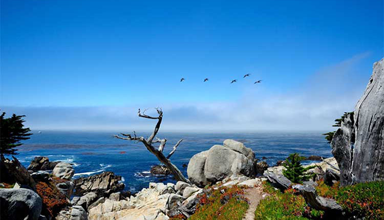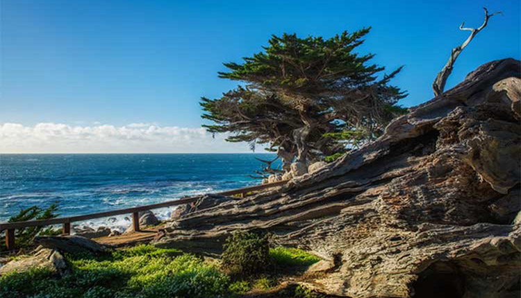 世界上海陆空最佳连接处就在,而且也只可能在蒙特利半岛(the Monterey Peninsula)的17英里。令人叹为观止的碧海蓝天、鲜花礁石、海狮水鸟、豪宅球场,历经两三百年风吹雨打仍屹立不倒的孤松(The Lone Cypress),景色秀美的野餐胜地西班牙湾(Spanish Bay),被早期水手当作蒙特利湾入口的乔伊岬(Point Joe),建于1919年典雅的圆石滩旅馆(The Lodge at Pebble Beach)……17英里的每一处风景都美得这么纯粹,让你忍不住想停下流浪的脚步,在这里驻守一生一世,每天听海风的声音,追寻麋鹿的脚印,捕获每一道迷人的风景。