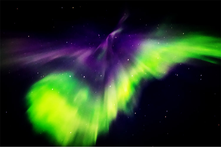 虽然没有极光之都特罗姆瑟的极光频繁,但茫茫冰雪之上,也常有夺目璀璨的极光闪现。